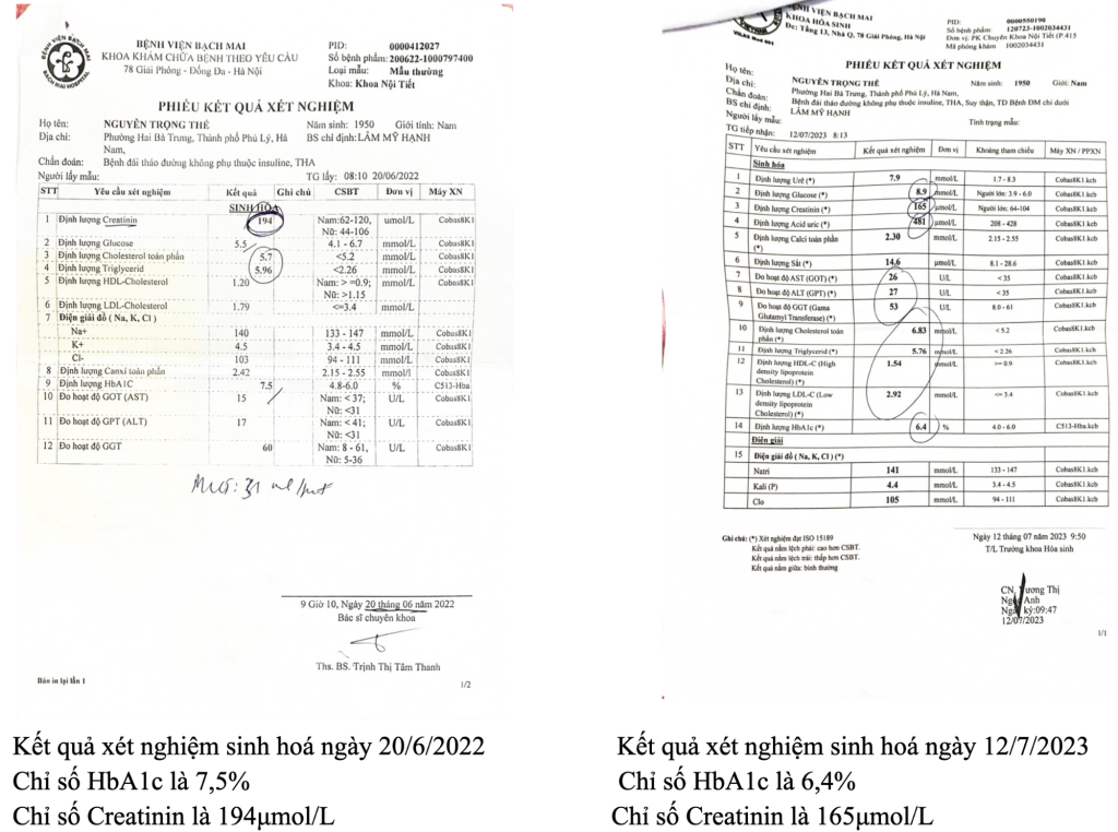 Ông Nguyễn Trọng Thể, 73 tuổi, ở Phủ Lý, Hà Nam, từng là bác sĩ chuyên khoa ngoại chấn thương, đã đối mặt với nhiều thách thức sức khỏe. Ông bị suy thận do biến chứng tiểu đường Tuýp 2, từ suy thận độ 1 sang độ 2, và bị sỏi thận tái phát.