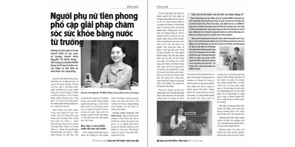 Không chỉ đơn giản là kinh doanh thiết bị tạo nước từ trường hoàn nguyên, doanh nhân Nguyễn Thị Minh Đăng – CEO Công ty Cổ phần KORO đang có kế hoạch chăm sóc sức khỏe cả thể chất và tinh thần cho cộng đồng.