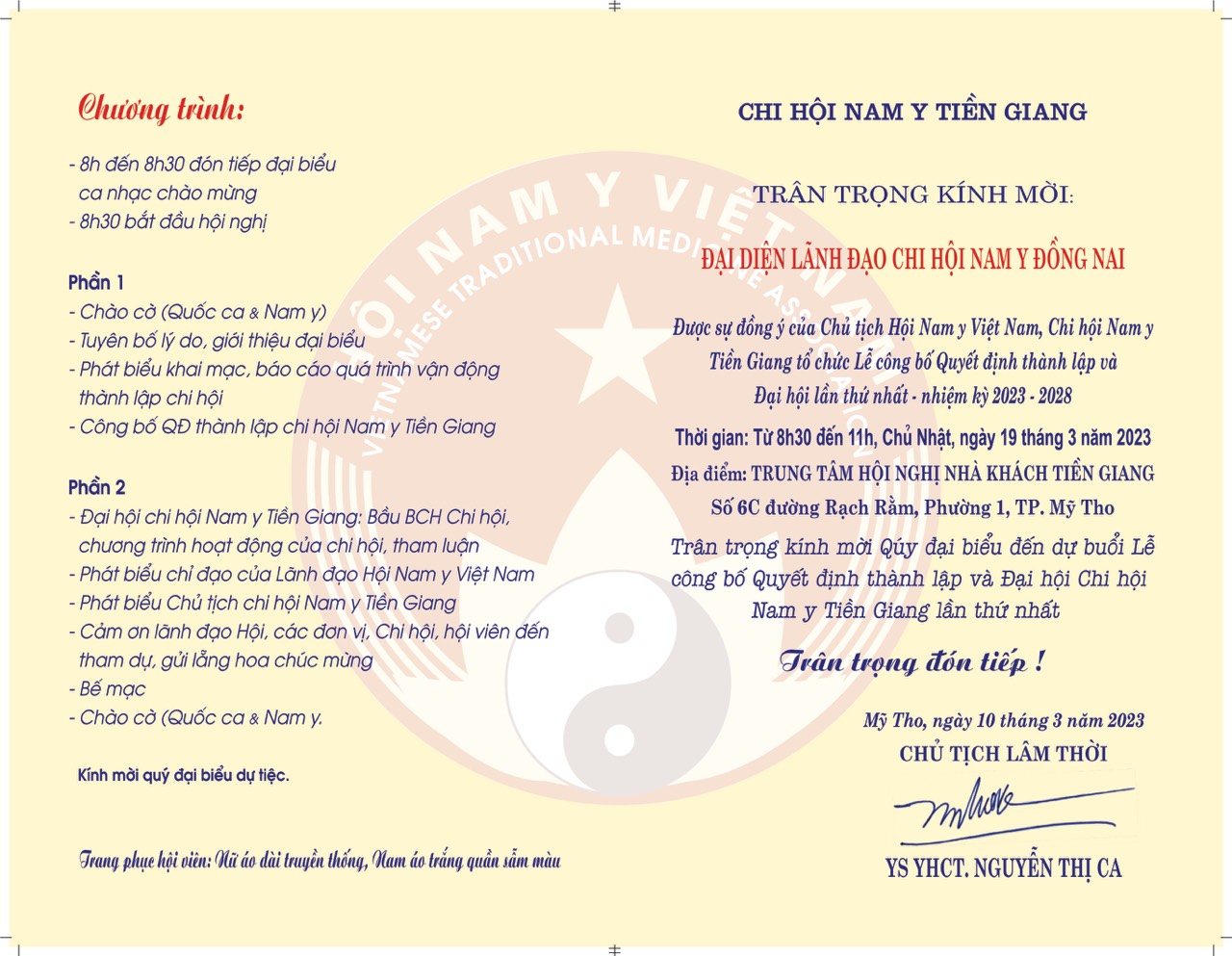 Thư mời hội viên tham dự đại hội chi hội Nam Y Tiền Giang 19/03